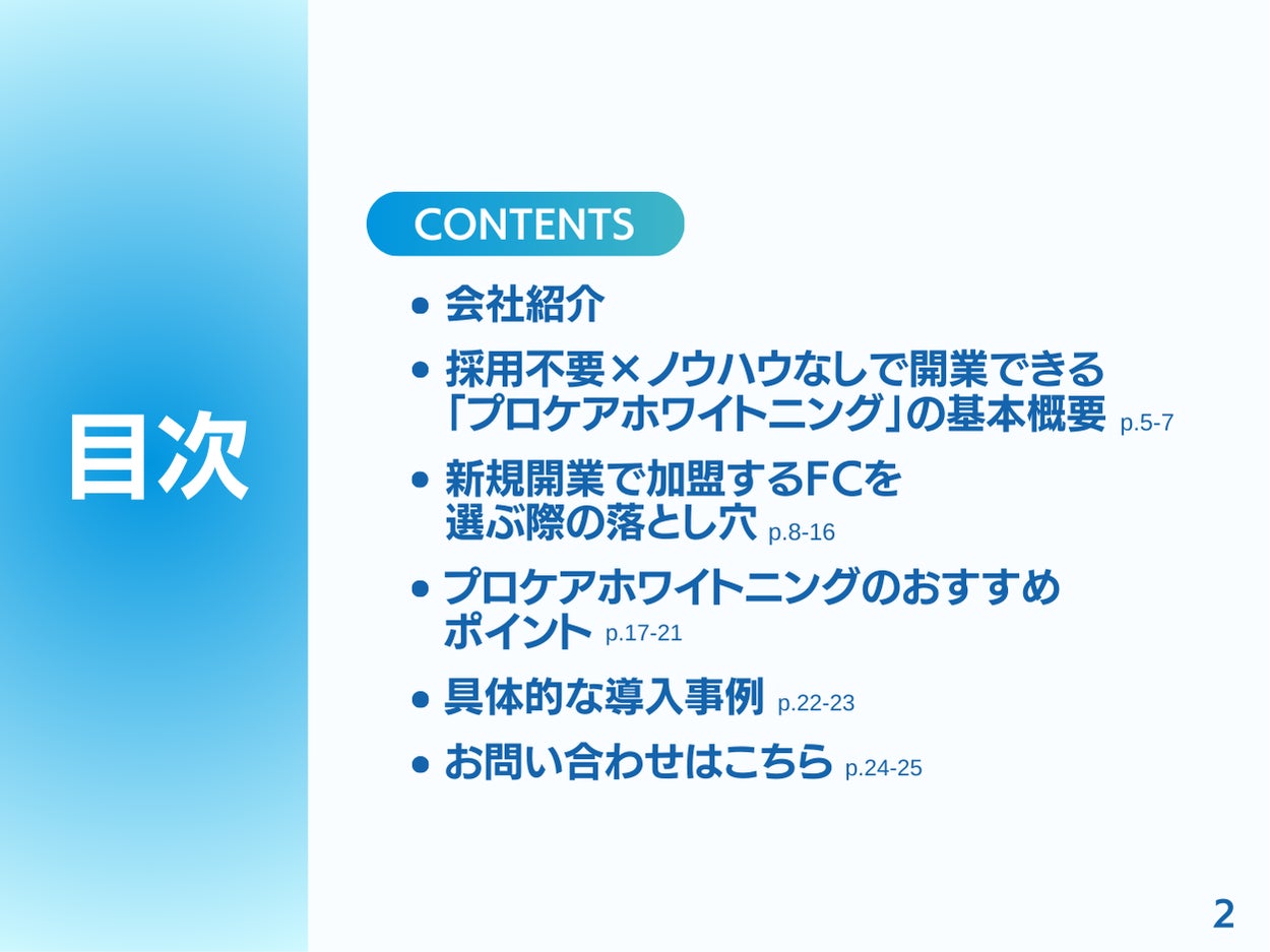 プロケアホワイトニングは、特別なスキルや経験がなくても高収益の医療ホワイトニング事業を簡単にスタートできる革新的なフランチャイズです。本レポートでは、プロケアホワイトニングの基本概要に加え、新規開業で加盟する際に注意すべきポイントや成功事例を基にした運営のコツについても紹介しています。