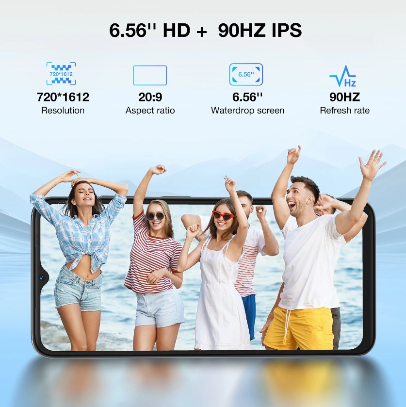 【6.56インチ + 90Hz 178°超広視野角IPS ディスプレイ】DOOGEE N55 Plusの6.56インチの大画面は、90Hzの高リフレッシュレートと90%の画面占有率により、視聴体験を次のレベルに引き上げます。この携帯電話は、20:9 のアスペクト比ディスプレイと絶妙な薄いベゼルを備えており、スムーズな視聴体験を実現します。