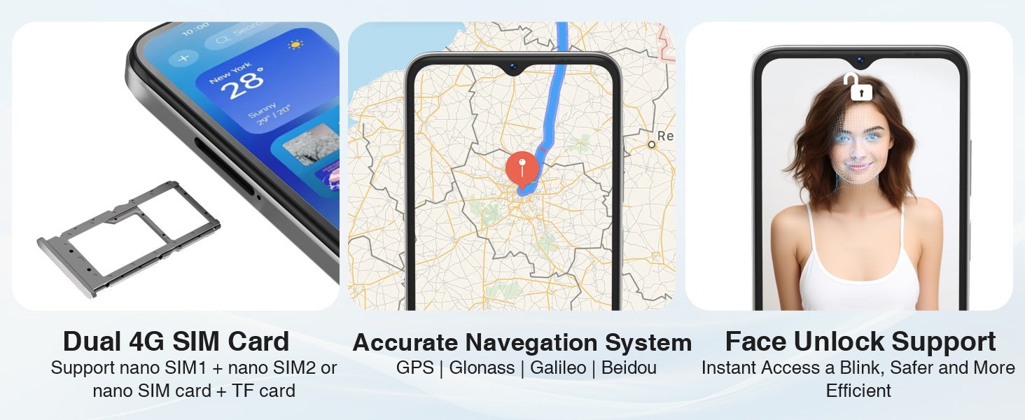 【顔認証 + 13MP + 8MP】 提供される DOOGEE N55 Plus の安くて優れた携帯電話は、正確な深度検知技術による顔認証ロックをサポートしており、携帯電話のロックを解除してセキュリティ アプリなどにアクセスできます。 DOOGEE N55 PLUS 携帯電話には 1300万画素の メインカメラが搭載されており、周囲の世界を素晴らしい画像で捉えることができます。800万画素の フロントカメラにより、あらゆる細部に焦点を当てることができます。