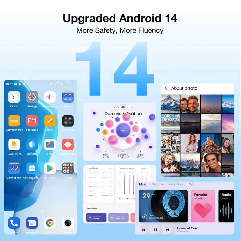 【最新のAndroid 14】DOOGEE N55 Plus携帯電話にはAndroid 14が搭載されており、複数のアプリケーションをスムーズかつ効率的に実行できます。この高度なオペレーティング システムは、最先端のセキュリティとプライバシー機能に加え、あらゆるニーズを満たすカスタマイズ オプションを提供します。さらに、ブラックとシルバーのグラデーションによるエレガントな幾何学模様のデザインと、厚さ8.6mm、重さ186gのスリムなボディにより、持ちやすさと使いやすさを実現しています。