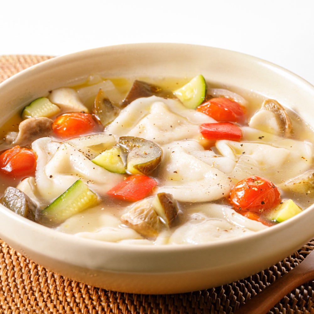 忙しい春の夜に、心ほぐれる一杯を!『7種野菜とぷるもち水餃子の旨だしスープ』