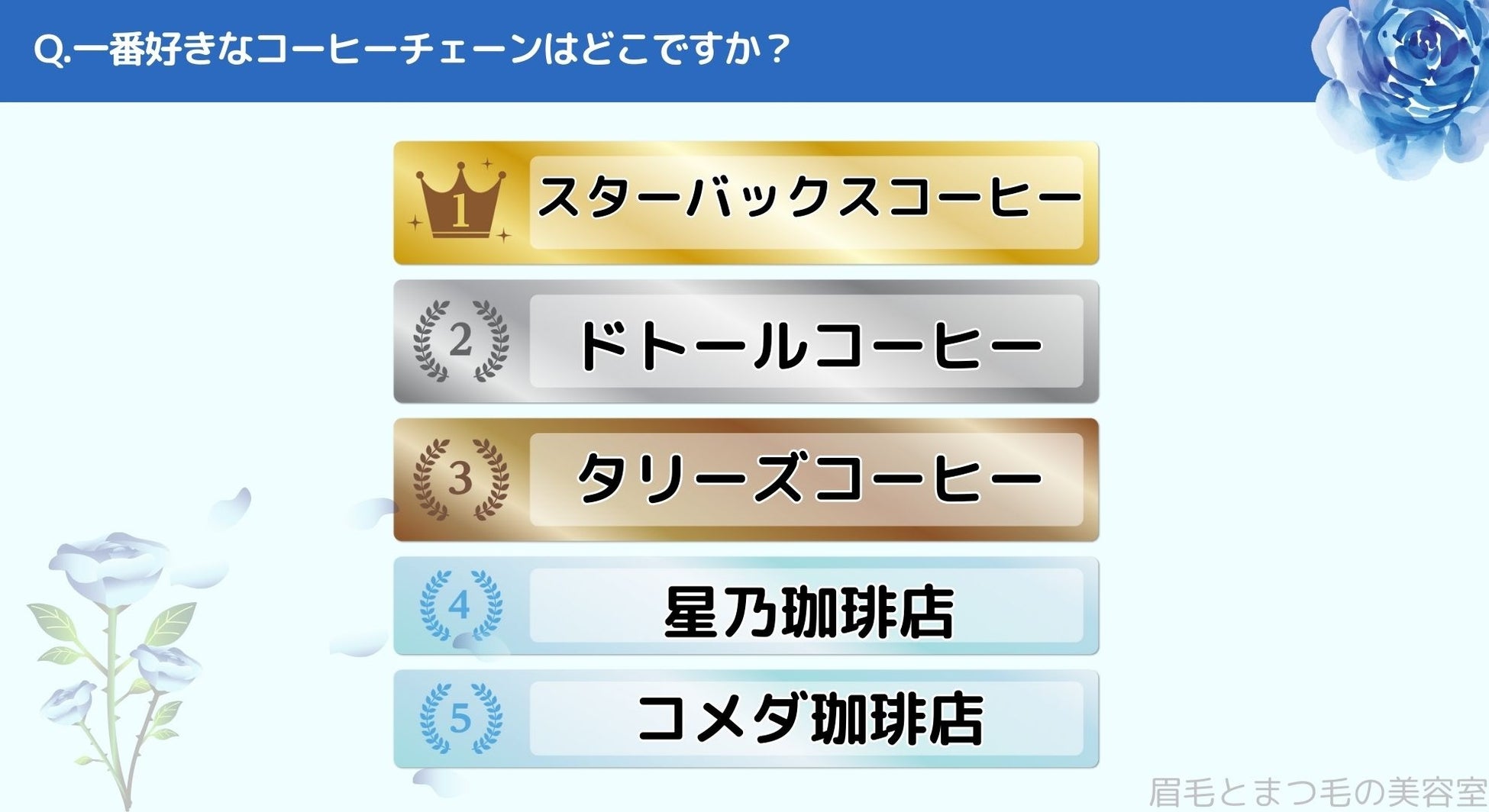 好きなコーヒーチェーンは?30代女性に調査|眉毛・まつ毛メディアの運営がアンケート