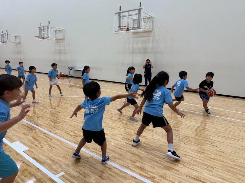 広いサブアリーナでの活動は、子どもたちにとって普段とは異なる特別な体験となり、ウォーミングアップから基礎練習、試合形式のゲームまで意欲的に取り組む様子が見られました。はじめは緊張していた子どもたちも、時間が経つにつれて仲間と声を掛け合いながら動きが活発になり、自然と笑顔が増えていきました。