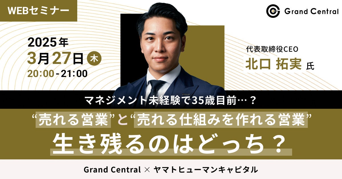 【3/27開催】マネジメント未経験で35歳目前…?“売れる営業”と“売れる仕組みを作れる営業”、生き残るのはどっち?| Grand Central × ヤマトヒューマンキャピタル