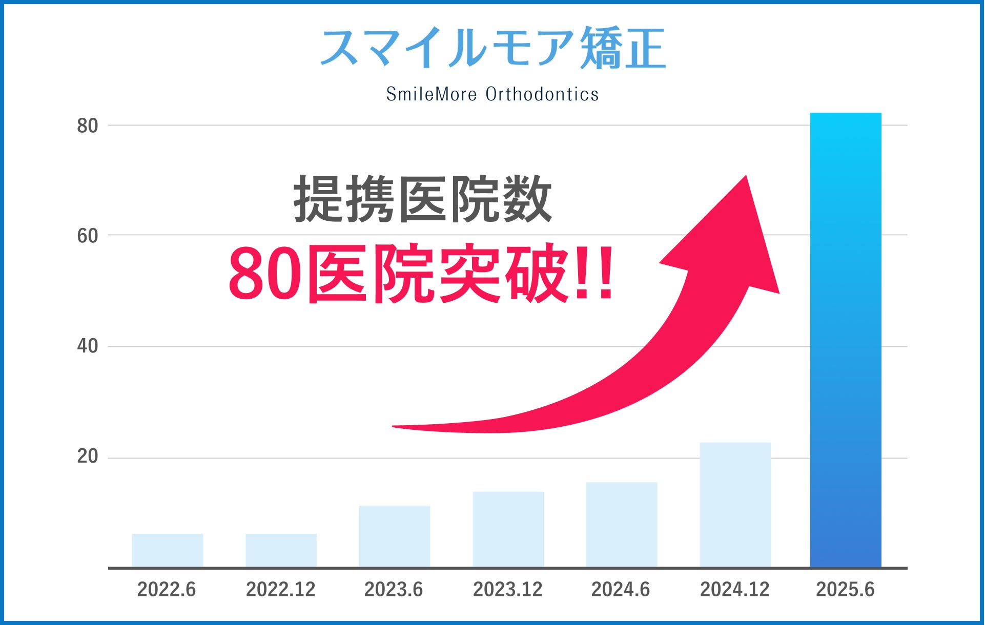 【マウスピース矯正の「スマイルモア矯正」、提携クリニックが80医院を突破!】お近くのクリニックで、もっと気軽に、自信の持てる笑顔へ