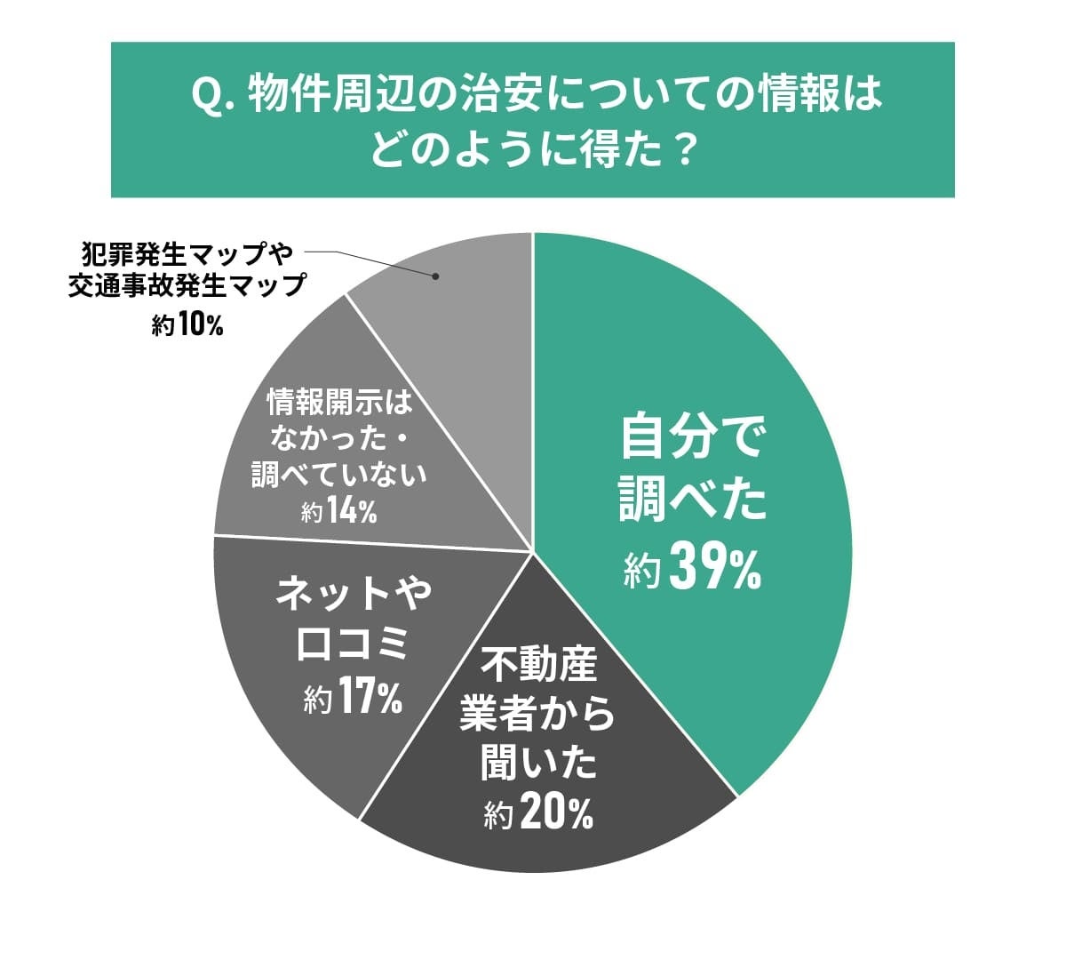 自分で調べた方が最多となった背景には、治安に対する関心の高さがあります。不動産業者からの情報だけでは不十分と感じ、自ら調査する姿勢が見られます。