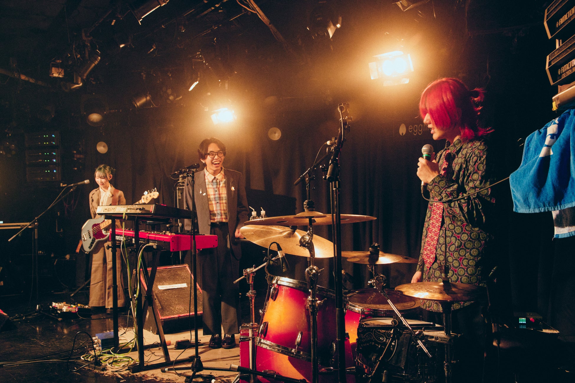 開演時間を迎えると、この日のために選んだ洒脱なスーツに身を包んだ、こうき(Vo./Key.)、らな(Ba.)、こた(Dr.)の3人が登場。