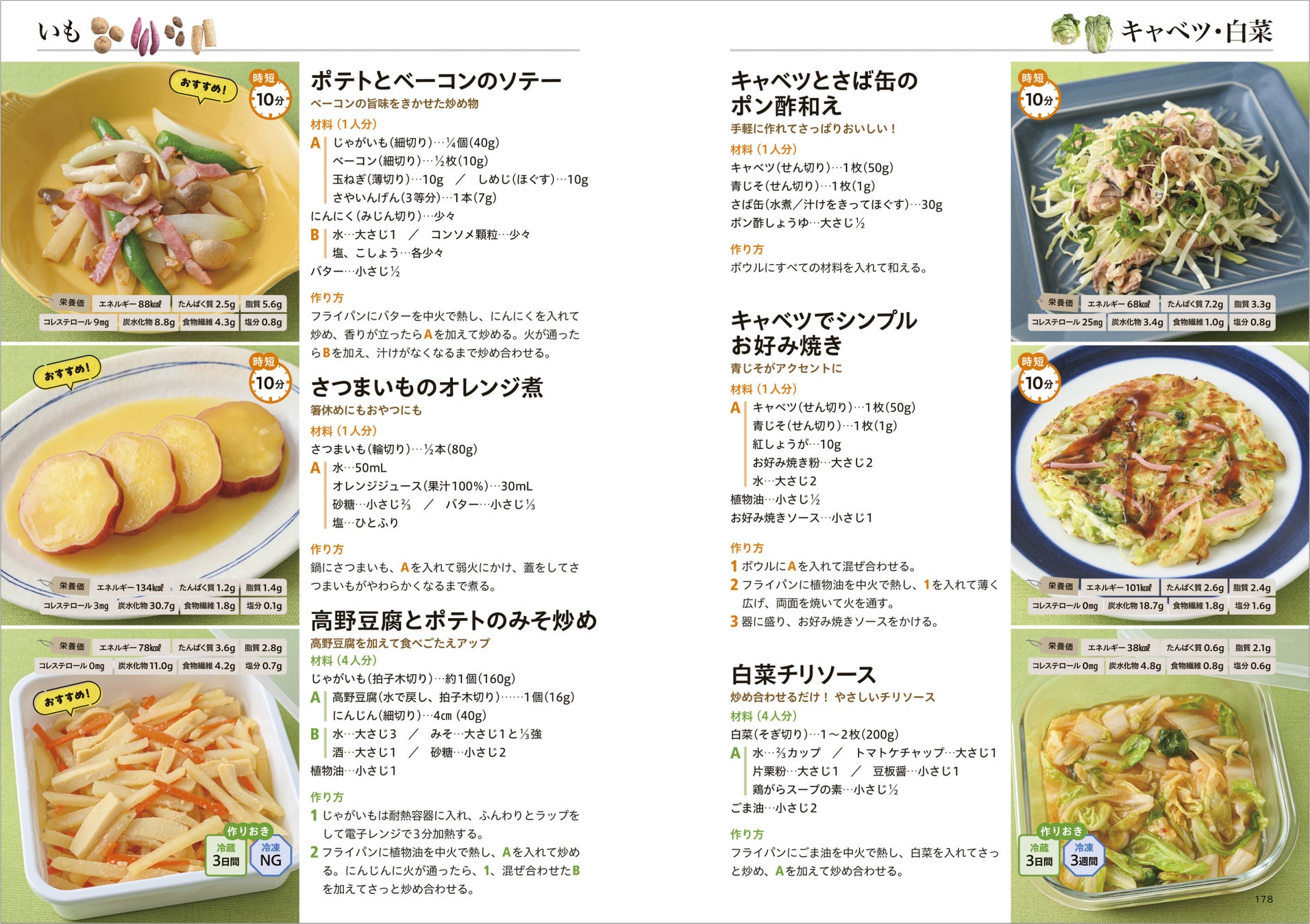 大根、きゅうり、なす、ブロッコリー、トマト、いも、海藻、きのこといった野菜類のおかずもたくさん掲載しています。作りおきができるものも数多く紹介しています。