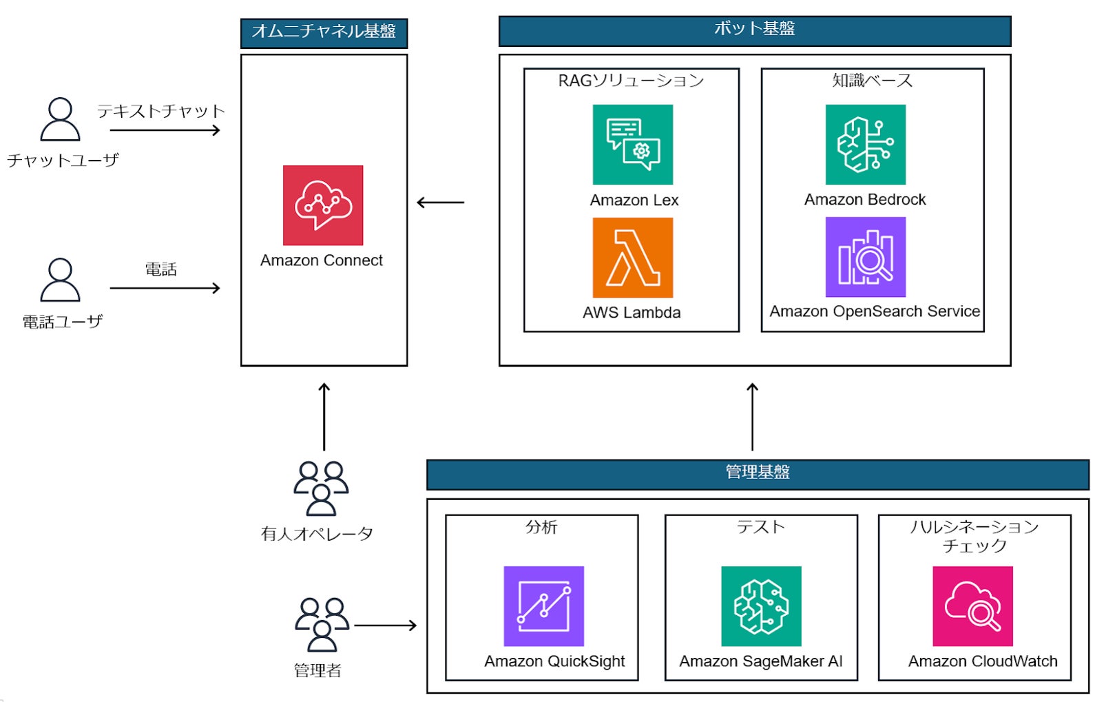 Amazon Connect、Lex、Bedrockなどを活用し、現場の業務フローに最適化されたAIエージェントを構築します。