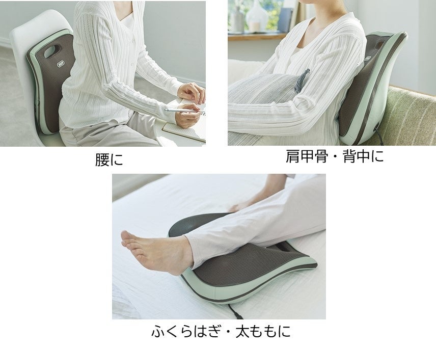 この度シリーズ初として発売するのは、「温めて、ほぐす。」をコンセプトに、もみ玉に35~40℃の温感ヒーターを搭載したマッサージャー3モデルです。温めることで、まるで人の手でほぐされているような揉み心地を再現しています。気になる部位にアプローチできる3タイプをご用意し、お好みに合わせて、蓄積した日ごろのコリをしっかりとほぐします。