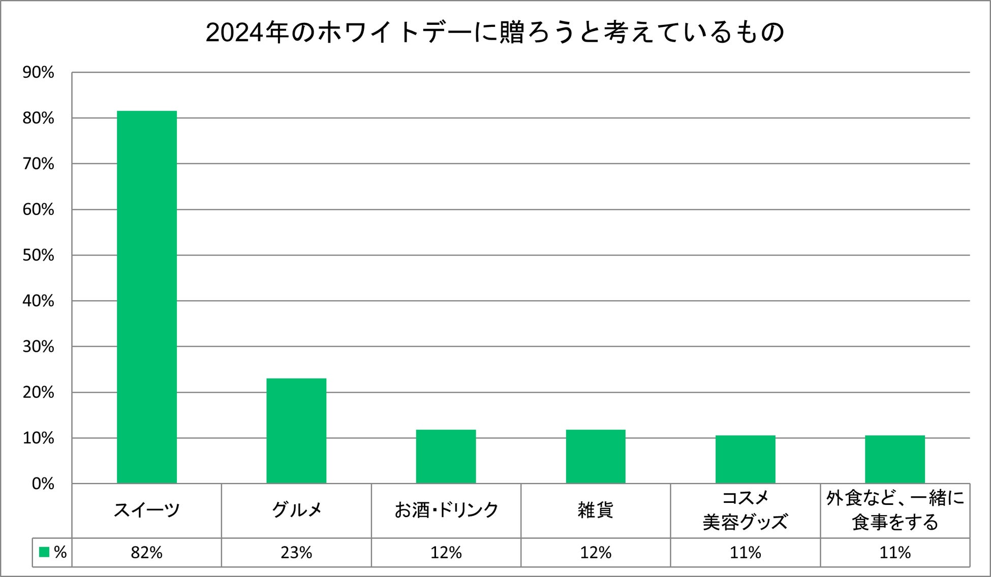 ・2024年のホワイトデーで贈りたいもの「スイーツ」が82%、「グルメ」は23%