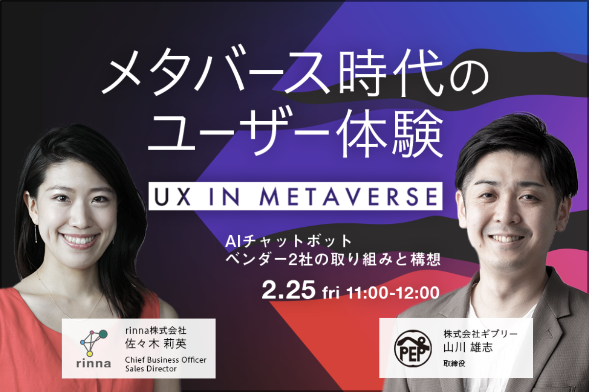 今回のリリースに際し、デジタルヒューマンを活かしたAIキャラクターをご覧いただけるウェブセミナーをrinna社と共催いたします。ウェブセミナー内ではメタバースなど今最もホットな技術における、今後の展開などにも触れる予定です。2022年に起きうる、顧客や社員とのコミュニケーションの変化にご関心のある方はぜひご参加ください。