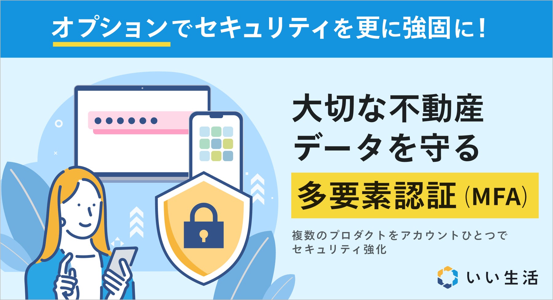 不動産業務を網羅するバーティカルSaaSと業務効率を推進するBPaaS(※1)で不動産市場のDXを推進する株式会社いい生活(東京都港区、代表取締役社長 CEO:前野 善一、東証スタンダード:3796、以下:いい生活)は、2024年10月23日に「いい生活アカウント 多要素認証 (MFA) オプション」をリリースしました。本サービスにより、複数のいい生活プロダクトSaaSに「いい生活アカウント」ひとつで多要素認証ログインが可能になります。多要素認証による不動産データ利用の安全性と、「いい生活アカウント」による複数プロダクトを横断した利便性のどちらも備えることで、不動産業界全体のデジタル化推進に貢献します。