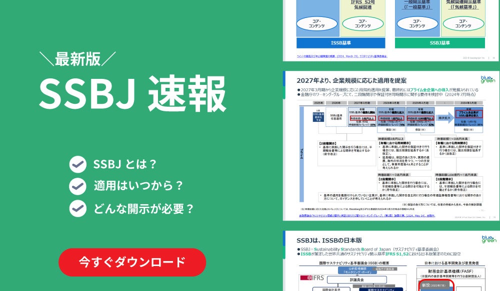 株式会社エスプールブルードットグリーン(本社:東京都千代田区、取締役社長:八林公平、以下「エスプールブルードットグリーン」)は、2025年3月末に基準の確定を控えているSSBJについて、適用スケジュールや開示が求められる事項など解説した資料を公開いたします。