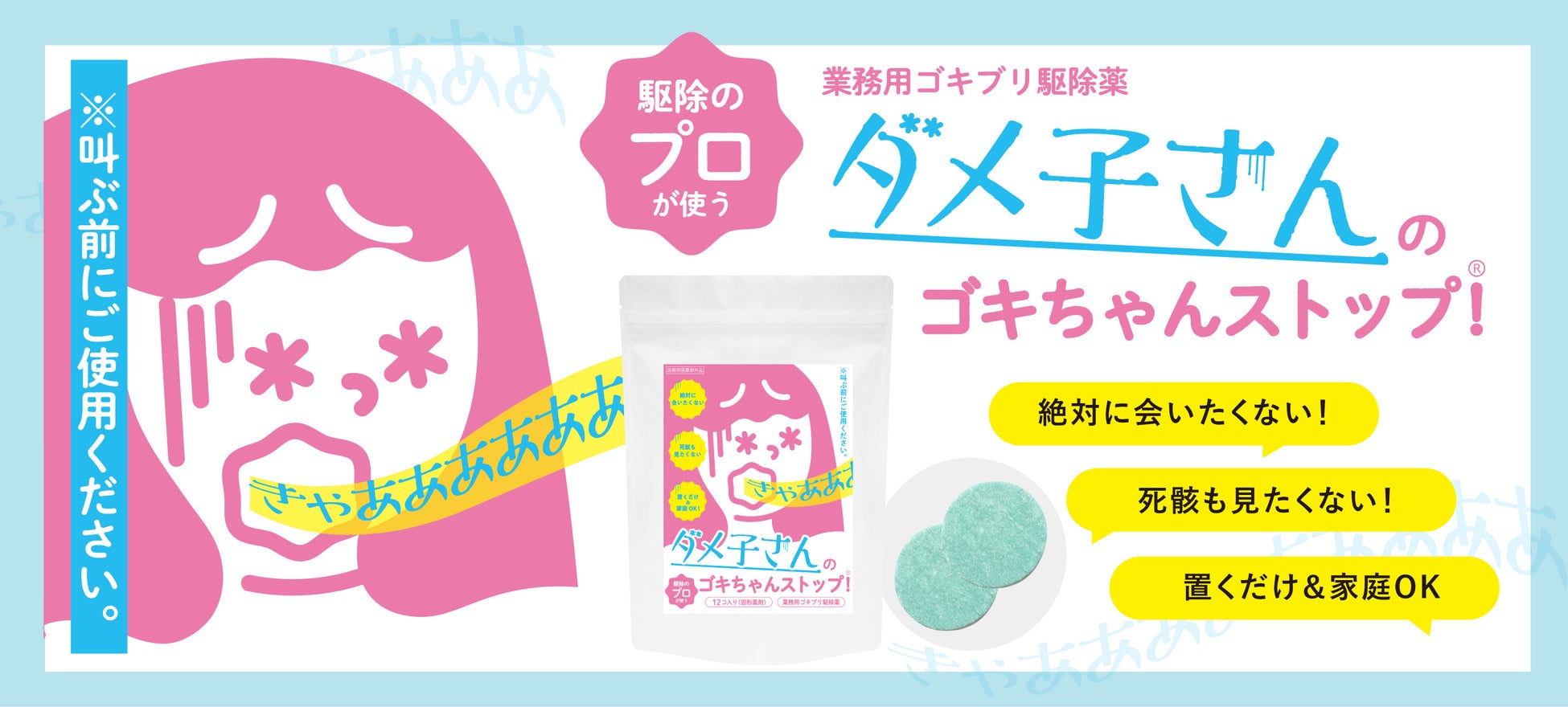 累計300万個以上出荷(※)の業務用駆除薬ゴキちゃんストップが「ダメ子さんのゴキちゃんストップ」を新発売。