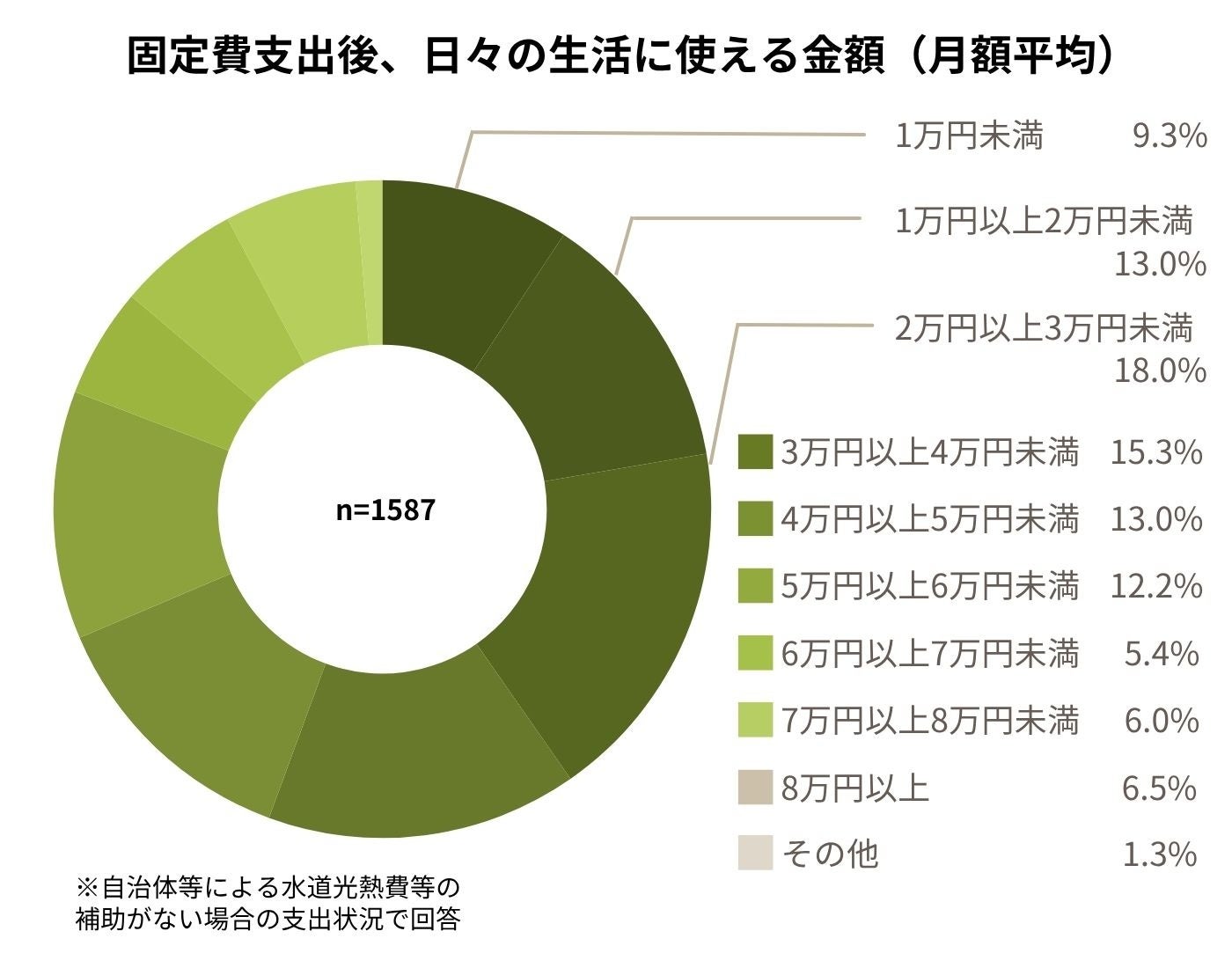 住居費や光熱費などの固定費を収入から支出した後、生活費や食費として月々使える金額について尋ねたところ、月3万円未満の回答者が約4割を占めました。