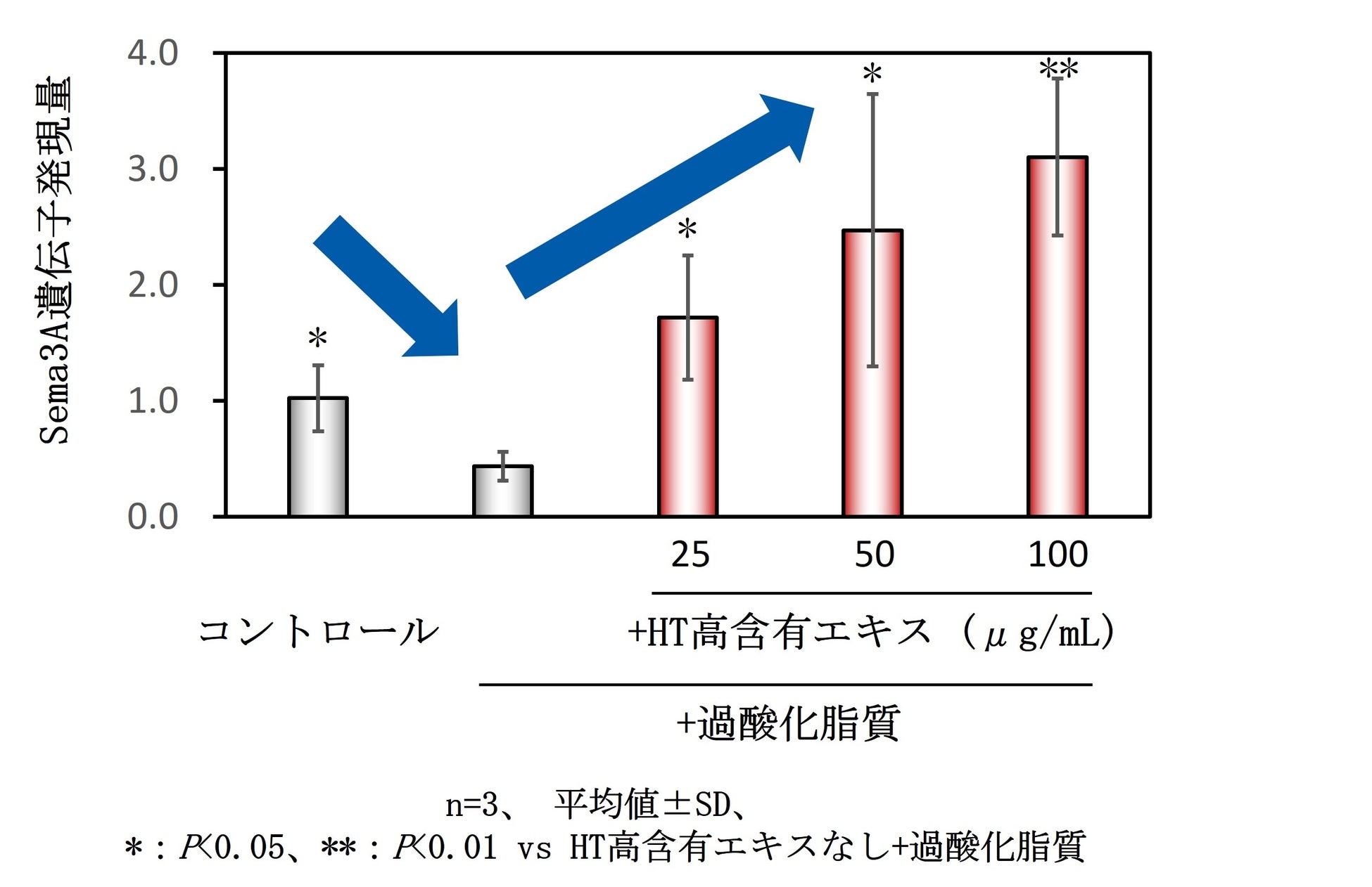 (2)HT高含有エキスが過酸化脂質によるセマフォリン3A(Sema3A)の減少を抑制することの確認