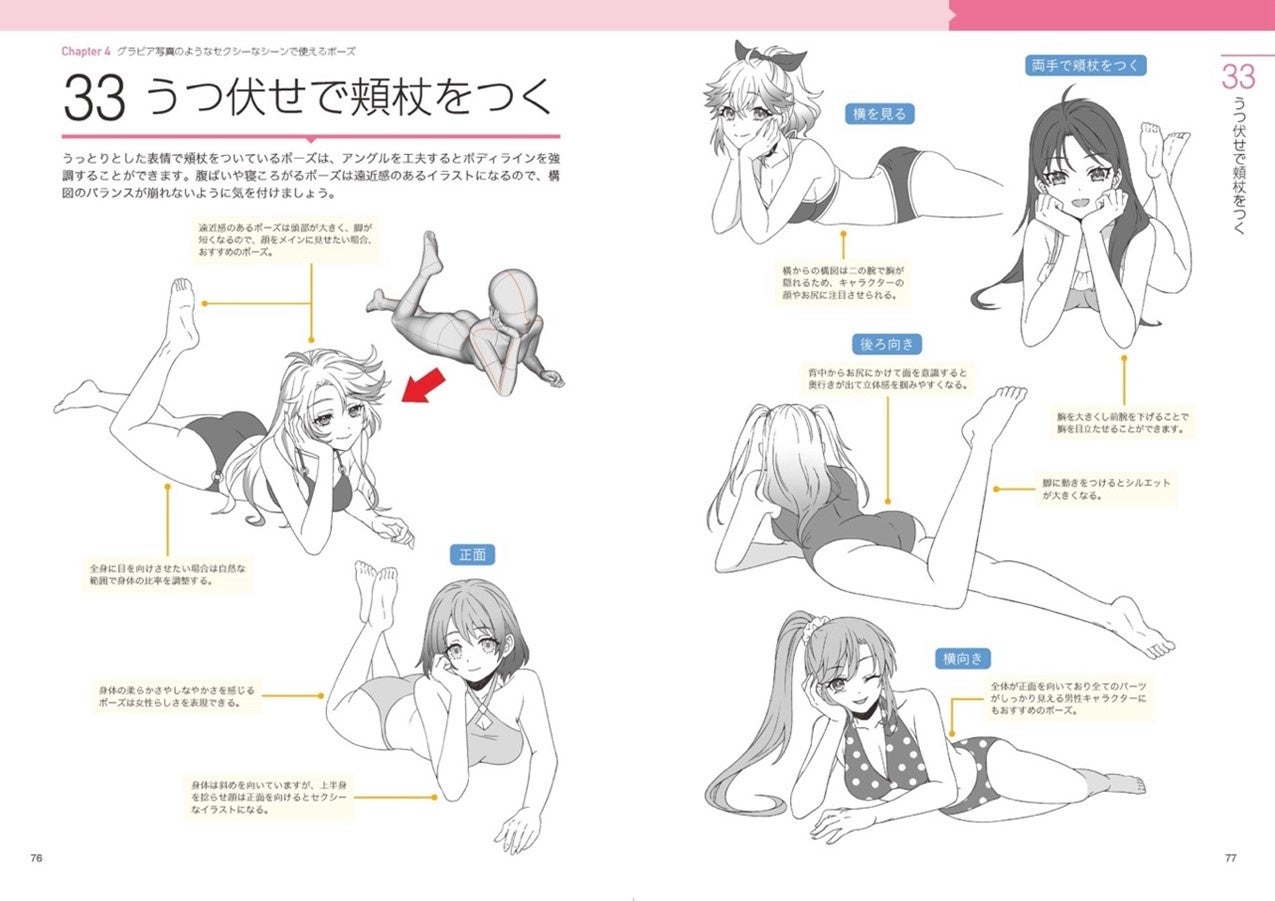 など色んなシチュエーションに合わせたポーズが盛りだくさん!テーマに合わせたポーズを複数掲載しているので、描きたいイラストがきっと見つかる!各ポーズで意識するポイントを解説!ポーズにぴったりな表情や衣装も描かれているので、イラストのアイデア出しにも使えます!