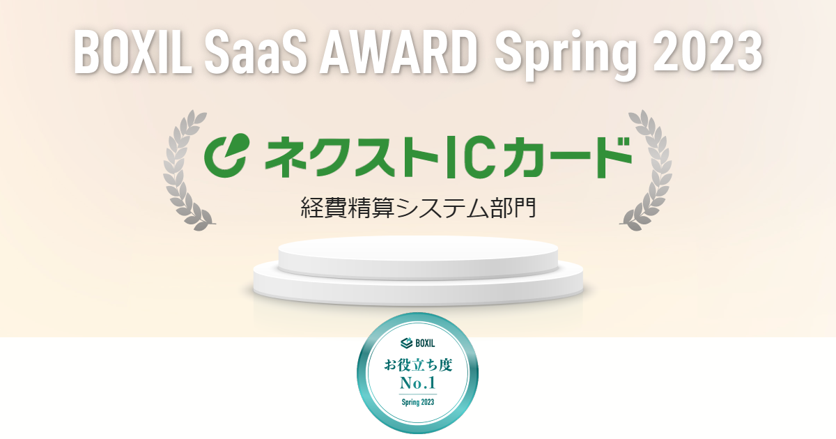 ネクストICカード、「BOXIL SaaS AWARD Spring 2023」経費精算システム部門で「お役立ちNo.1」に選出