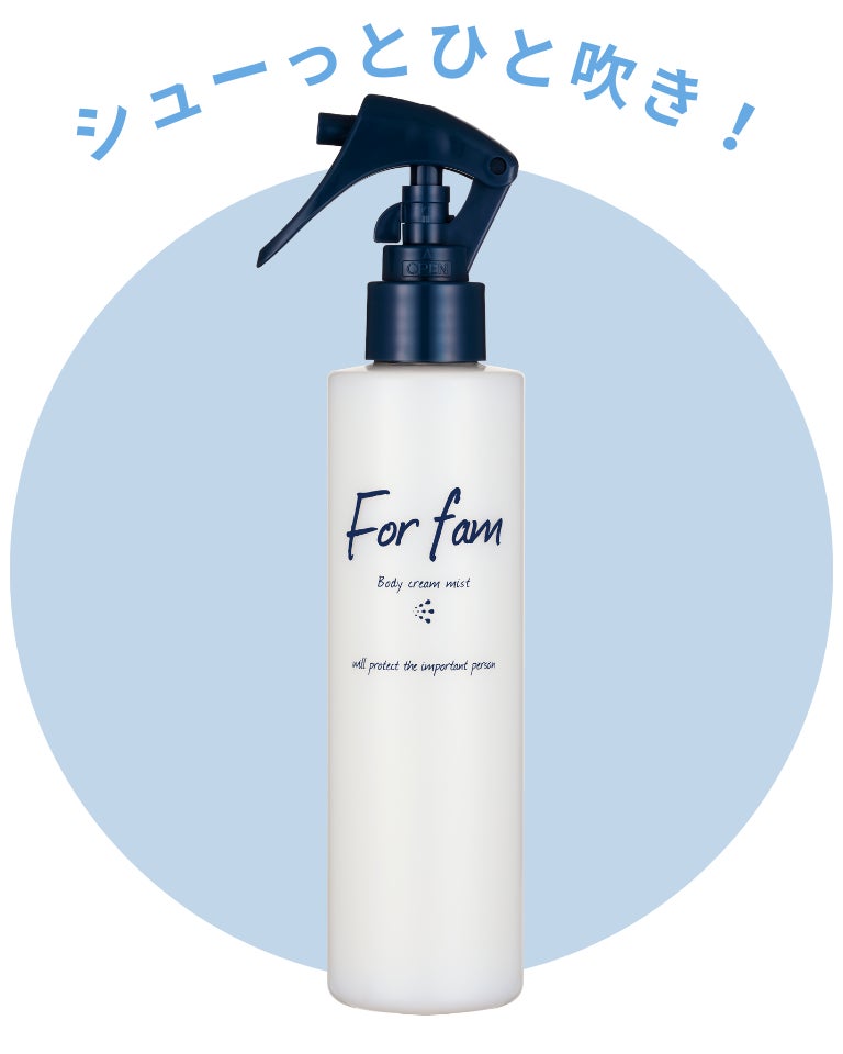 こどもから大人まで家族みんなで使えるFamily cosmeブランド「For fam(フォーファム)」から春夏の肌トラブル※1にアプローチするクリームinボディミストが新登場!