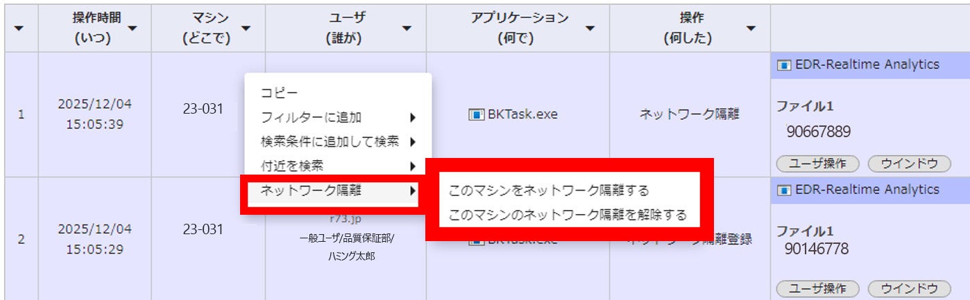 「脅威即隔離」でPC環境を快適・安全に! EDR-Realtime Analyticsからネットワーク隔離可能へ