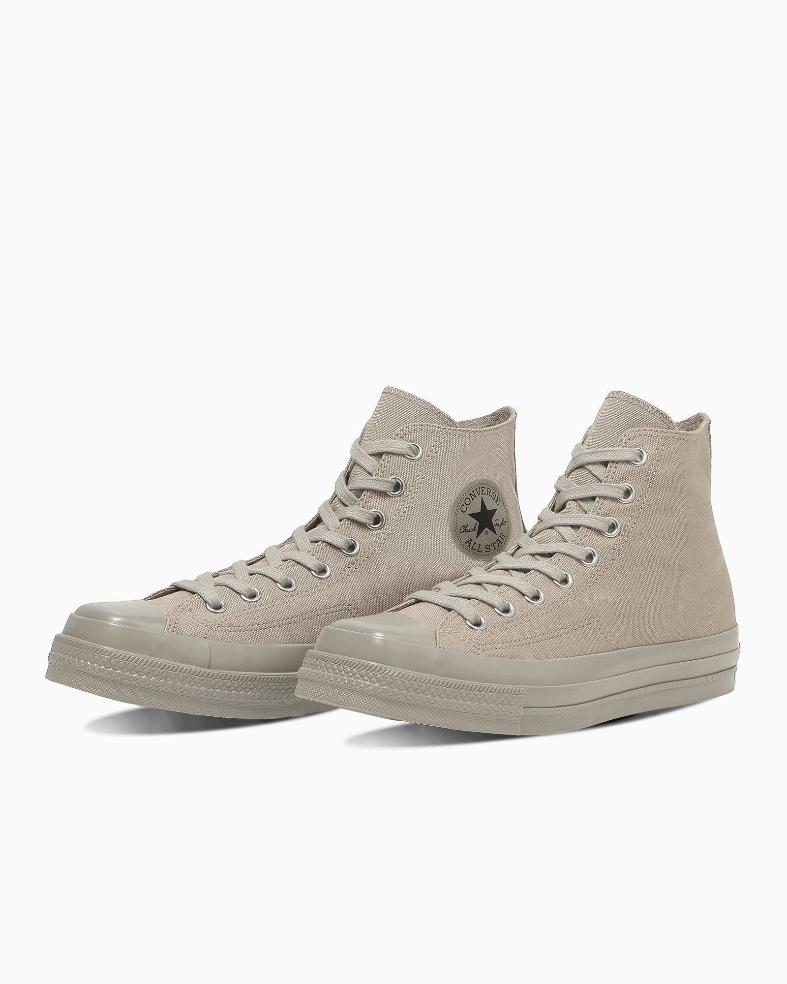 洗練された佇まいの「ALL STAR SQUARETOE HI」は、モードな雰囲気を醸し出す、ニュアンスカラーのアッパーとテープがポイント。柔らかなストーンベージュ/アッシュトープと、シックなアスファルトグレイ/ジェットブラックの2カラーが仲間入りします。