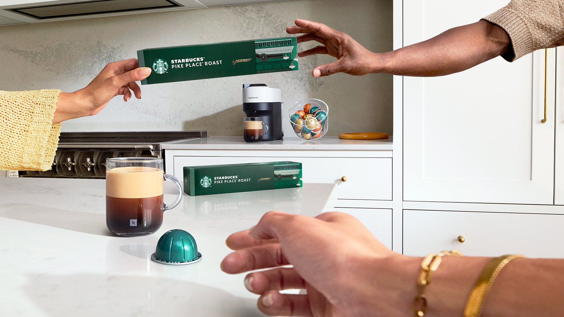 ネスプレッソは、「スターバックス® by ネスプレッソ ヴァーチュオ」を通じて、お気に入りのスターバックス®コーヒーの味わいをどなたでも自宅で簡単に楽しむことを可能にします。