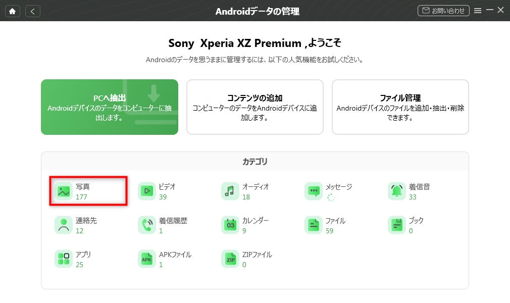 「DroidKit - Androidデータ管理」はカテゴリでAndroidのデータを管理できます。詳しいのは、以下の記事をご参照にしてください。