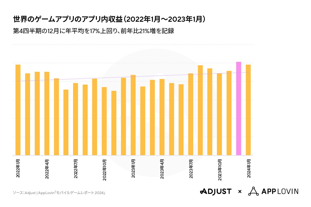 2023年には前年比6%増と顕著な伸びを示したほか、12月には年間平均を17%上回って前年比で21%増加しました。2024年も成長は続き、1月のアプリ内収益は前年比で13%増加する結果となりました。