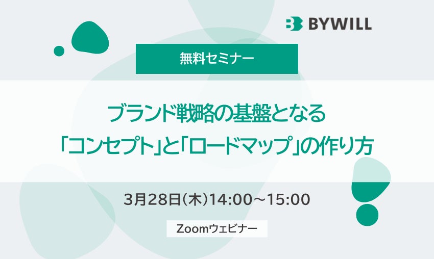 企業のブランドコンサルティング・脱炭素コンサルティングを行う株式会社バイウィルは、無料セミナー『ブランド戦略の基盤となる「コンセプト」と「ロードマップ」の作り方』を2024年3月28日(木)にオンラインにて開催致します。