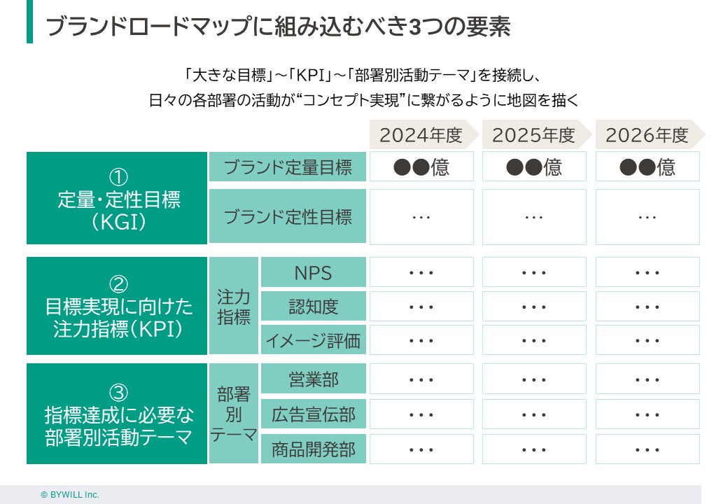 納得できるコンセプトを作ったものの、その後「誰が」「いつまでに」「何をするのか」が曖昧になっていたり、ブランドとしての目標やKPIが明確になっていなかったりすると、