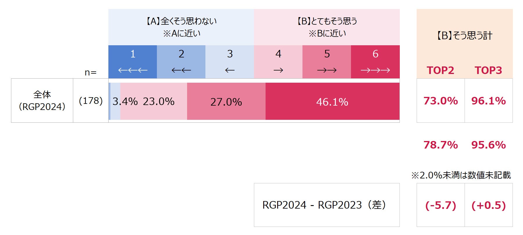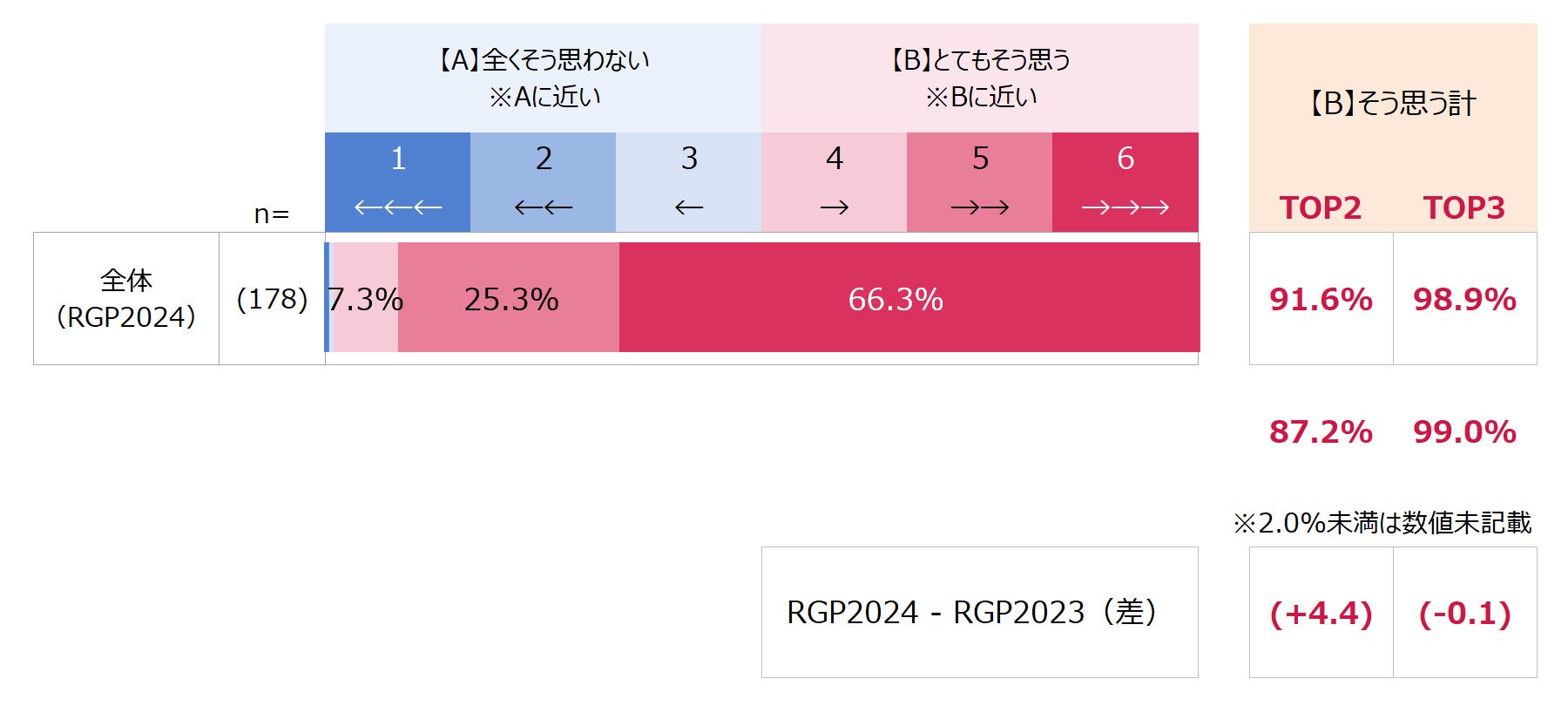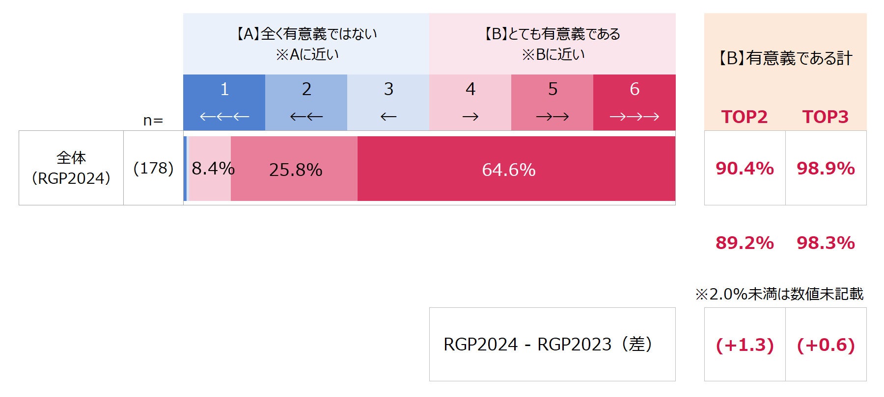 TOP2【5-6と回答】で見ても90.4%が有意義だと感じており、昨年と比較するとTOP2、TOP3ともに微増しました。