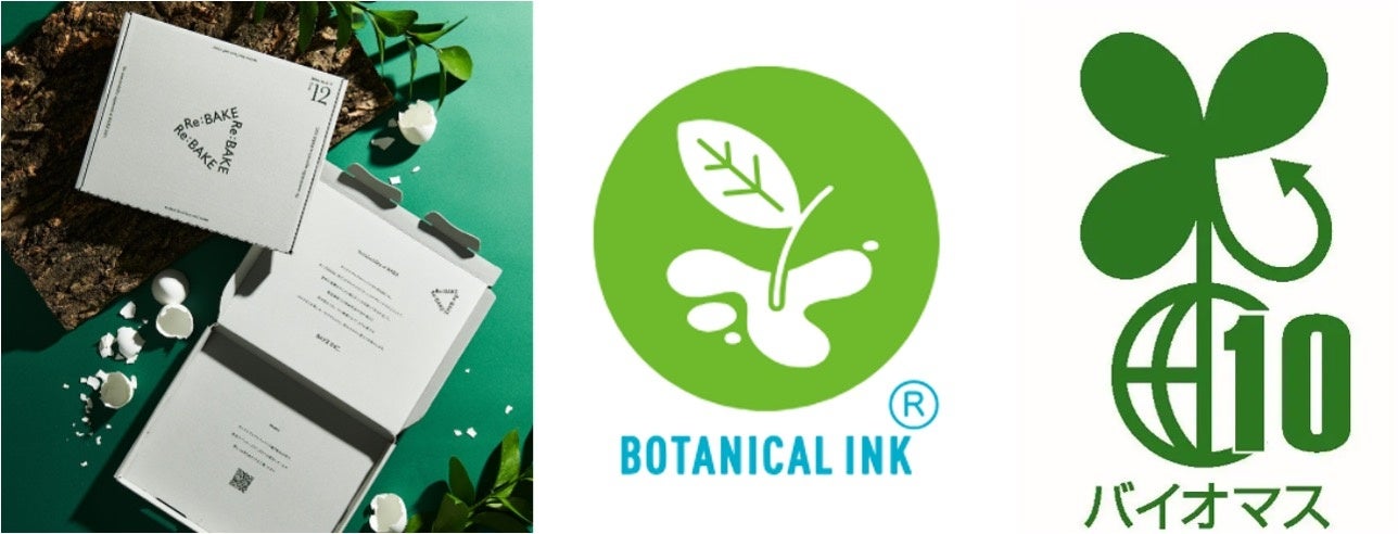 本プロジェクトの一環として、包装についても取り組みました。外箱には一部再生可能資源として卵の殻を使用し、外箱の文字印刷で使われるインキに含まれる一部の材料も、従来の石油由来材料から変更。インキに含まれる固形分の一部に、樹木や種子などから得られる植物由来材料から作られるボタニカルインキ*¹を採用しています。植物が吸収したCO2と印刷物を焼却した際に発生したCO2を相殺するというカーボンオフセット*²の観点から、大気中に排出するCO2の削減に貢献いたします。また、内袋の印刷には、バイオマスインキを採用。再生可能で持続的に利用できる、生物由来の資源から成分を抽出して造られた原料を一部使用しています。バイオマスマーク認定商品は安全で循環型社会の形成に貢献し、地球温暖化防止に役立っています。