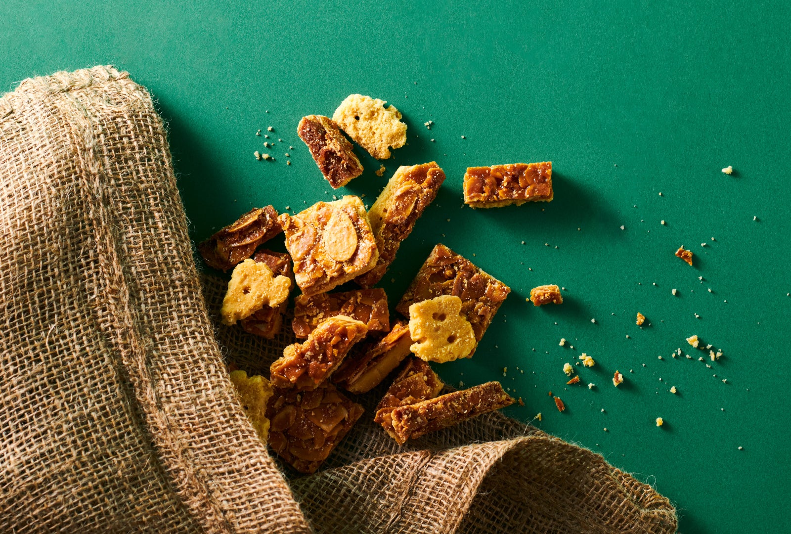 架空のパティスリー「しろいし洋菓子店」で販売する、「しろいし洋菓子店のクッキー缶」に入っているフロランタンに着目。製造時に出たフロランタンの切れ端を、本プロジェクトオリジナルパッケージに梱包してお届けします。北海道産のバターを使ったサクサク食感や香ばしさをお楽しみいただけます。おやつ時のスイーツとしてはもちろんのこと、サラダやヨーグルトなどといった毎日の献立へのトッピングにもおすすめです。