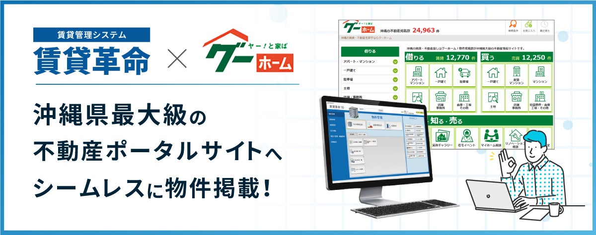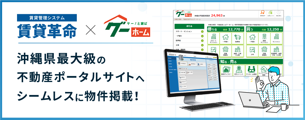 沖縄県最大級の不動産ポータルサイト「グーホーム」と賃貸管理システム「賃貸革命10」が連動開始