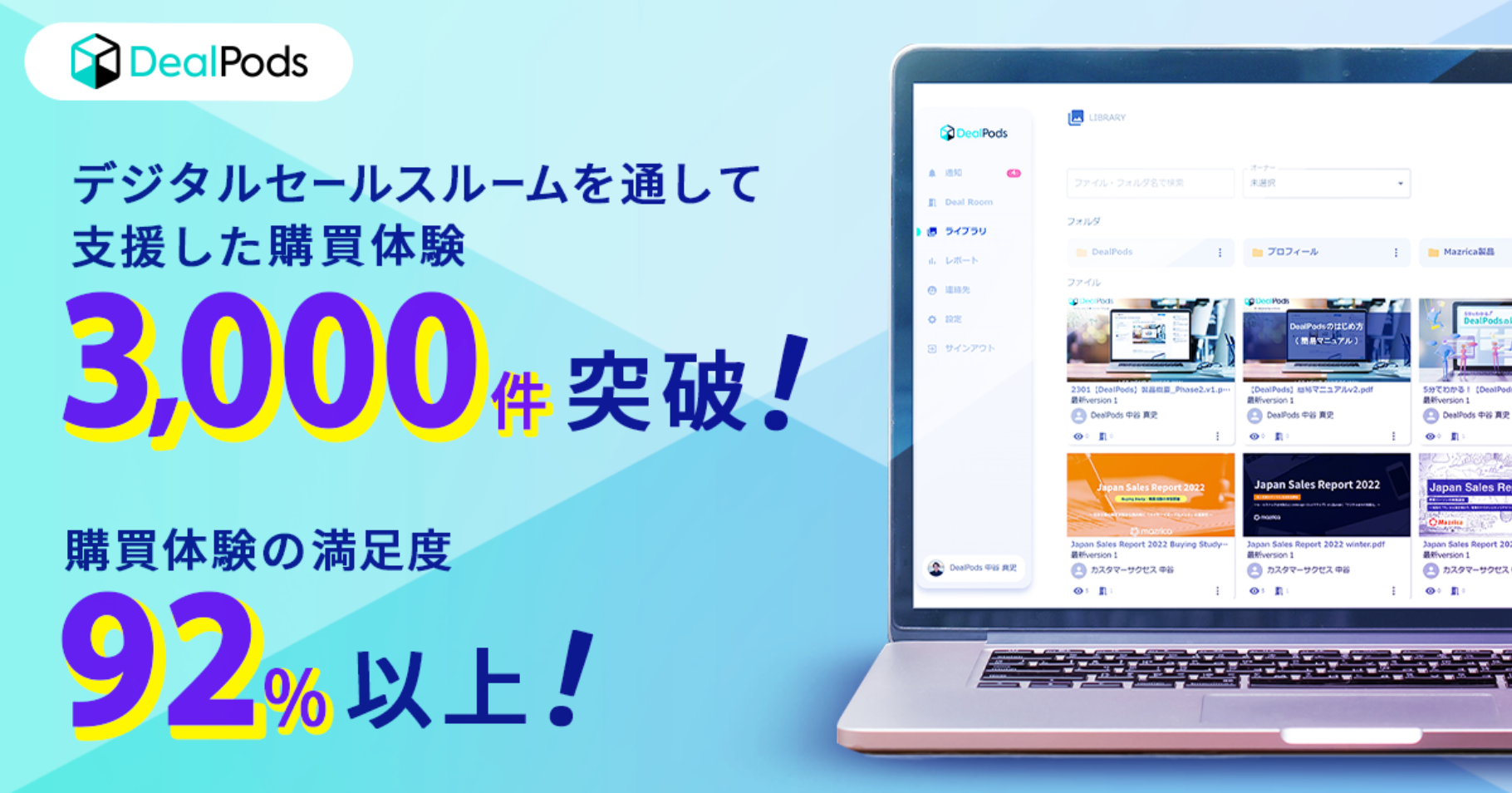 【マツリカ】DealPods、デジタルセールスルームで支援した購買活動が累計3000件を突破!購買体験の満足度は92%を記録!