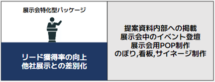 インパクトのあるタレントの等身大パネルや会場内装飾までをトータルサポートいたします。展示会で多くの注目やリードを集めることに特化したパッケージです。