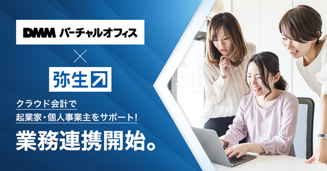 弥生株式会社(本社:東京都千代田区、代表取締役社長:岡本 浩一郎)は、「DMMバーチャルオフィス」を展開する合同会社DMM.com(本社:東京都港区、会長 兼 CEO 亀山敬司、以下DMM)と業務連携しましたことをお知らせします。