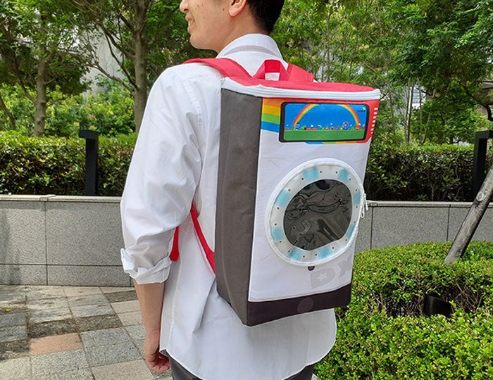 洗濯物も手袋も持ち運びやすい、「ドラム式洗濯機風ゲーム型リュック」です。