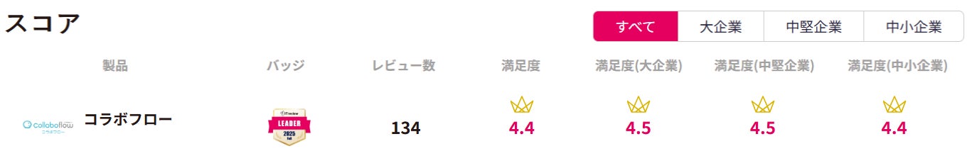 2025年9月までに掲載されたレビューを元に「ITreview カテゴリーレポート 2025 Fall」が発表され、コラボフローがワークフローシステム部門の18期連続「顧客満足度No.1」に選ばれました。