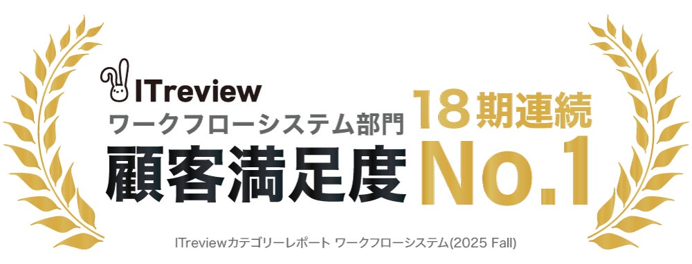 2025年4月には、ITreviewが発表する「ITreview カテゴリーレポート 2025 Spring」ワークフローシステム部門において、4年連続(16期連続)で顧客満足度No.1に選出されました。