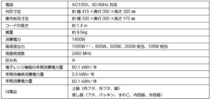 (※1)蒸し器は必ず付属のものをお使いください。付属の土鍋、蒸し器を他のレンジやコンロなどの調理機器、直火では使用しないでください。