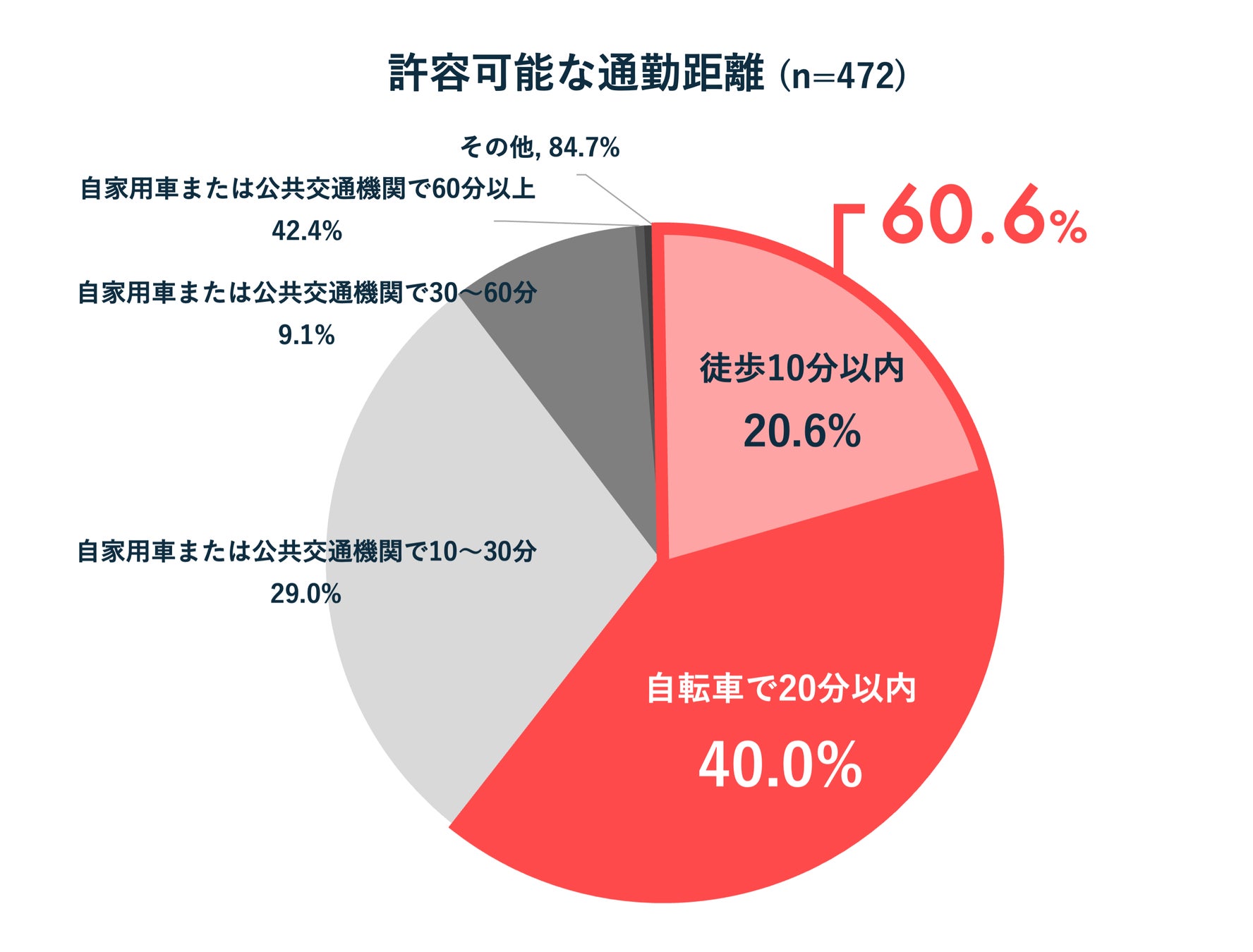 許容可能な通勤距離は自宅から半径5キロ圏内の「自転車で20分以内」が6割。
