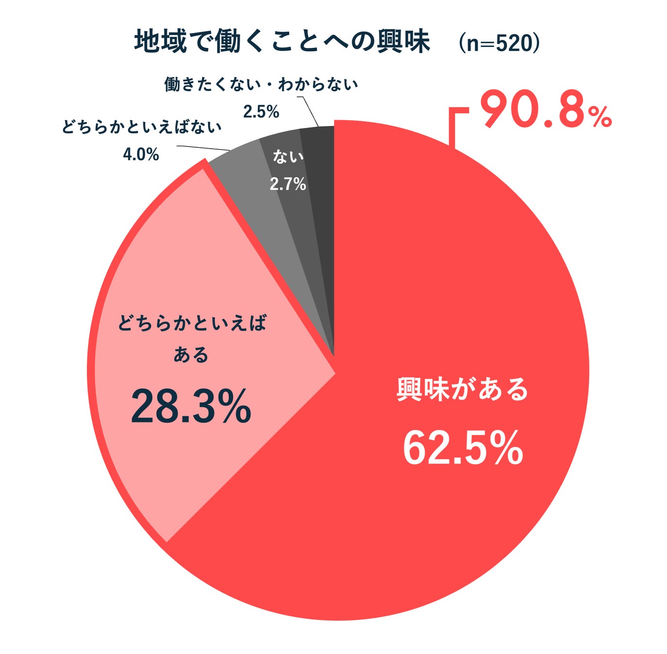 地域コミュニティアプリ「ピアッザ」のユーザー520名に、ご自身の住んでいる街や近隣エリアなど地域で働くことに興味があるかを尋ねました。その結果、「興味がある」と回答した人は90.8%(ある:64.4%、どちらかといえばある:27.8%の合計)でした。