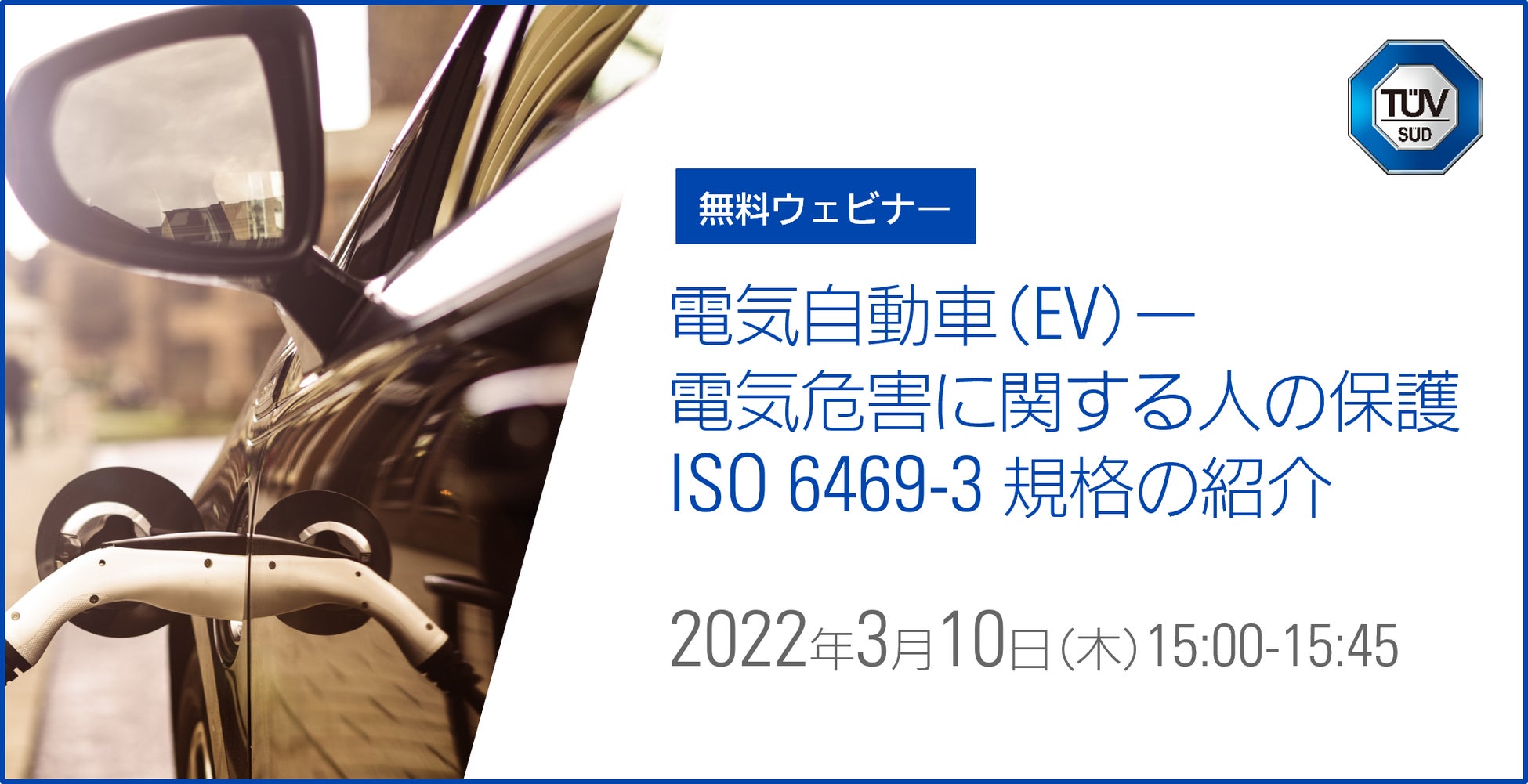 テュフズードジャパン、ライブウェビナー「電気自動車(EV)ー電気危害に関する人の保護:ISO 6469-3 規格の紹介」のお知らせ