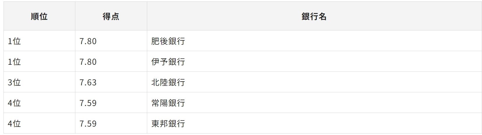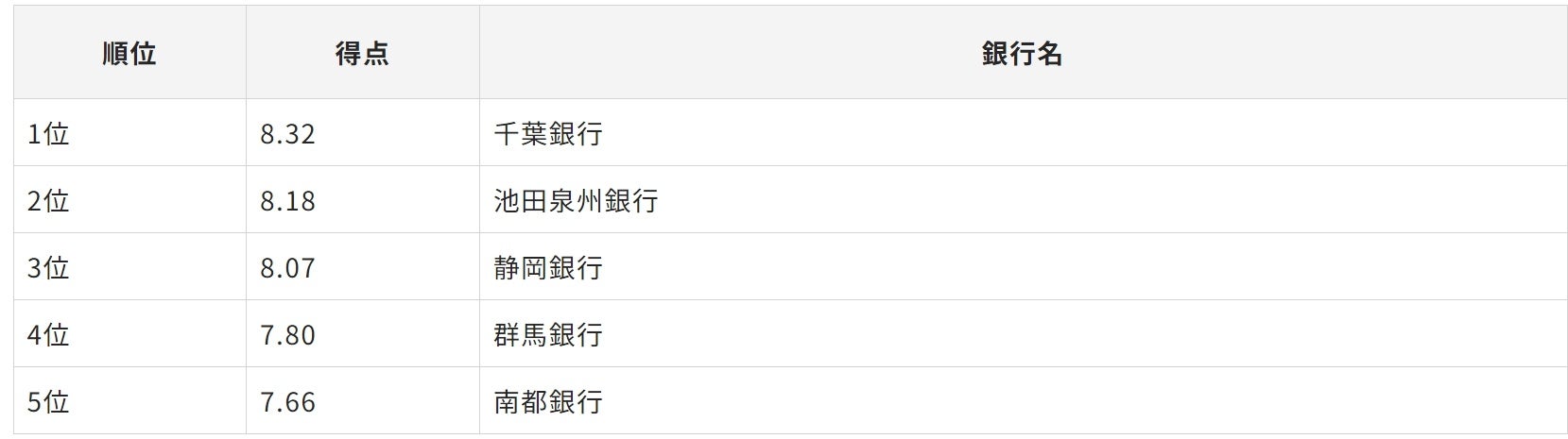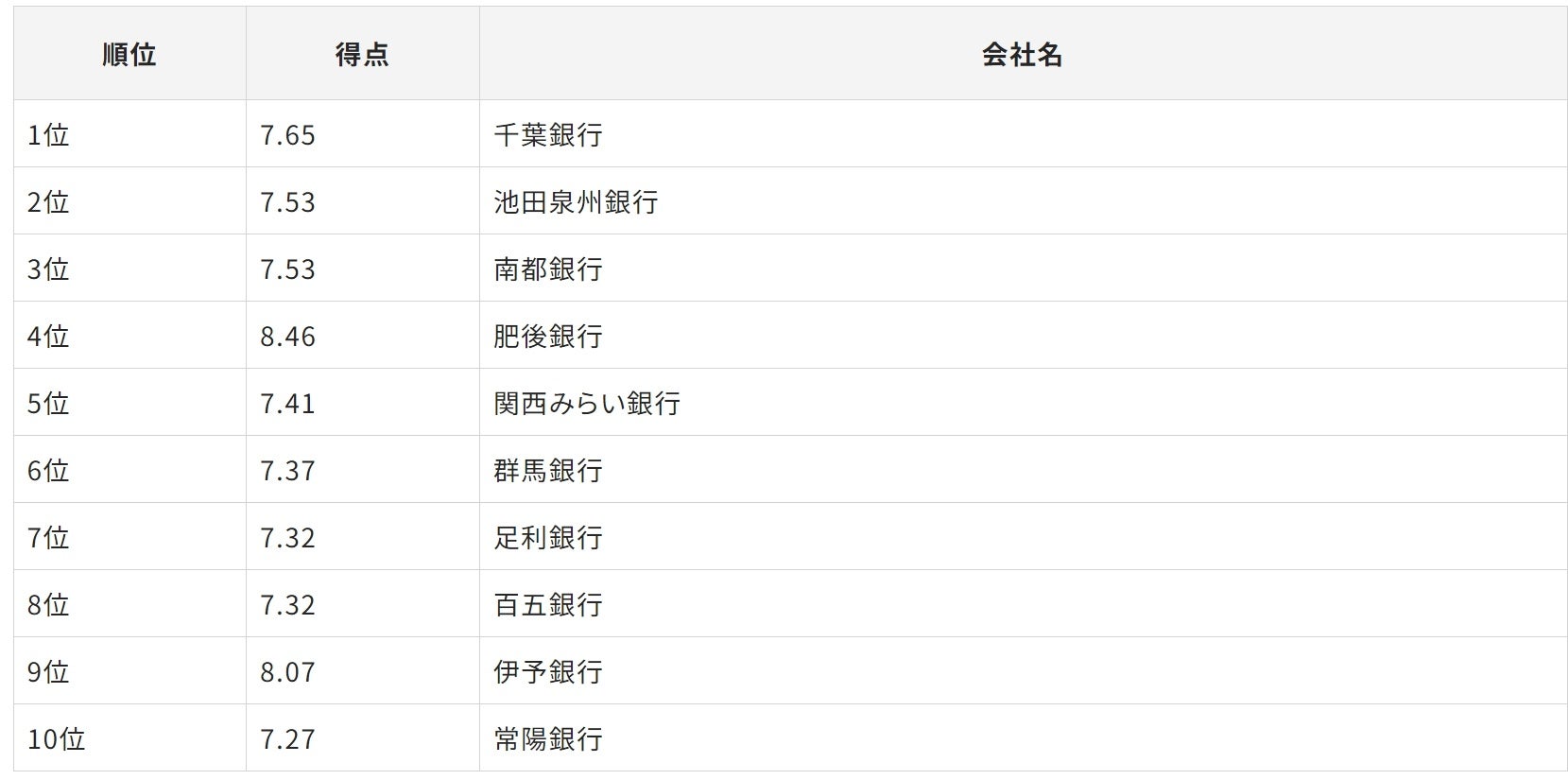「Gomez 地方銀行サイトランキング2024」上位10行は、次の通りです。