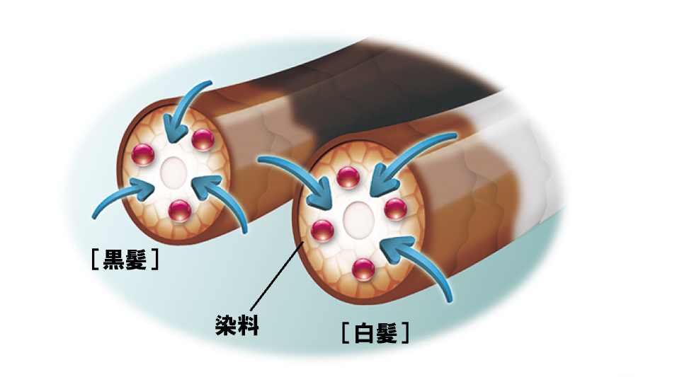1剤と2剤の混合比と放置時間を見直した新処方。黒髪は明るく白髪は鮮やかに、バランスよく染め上げます。