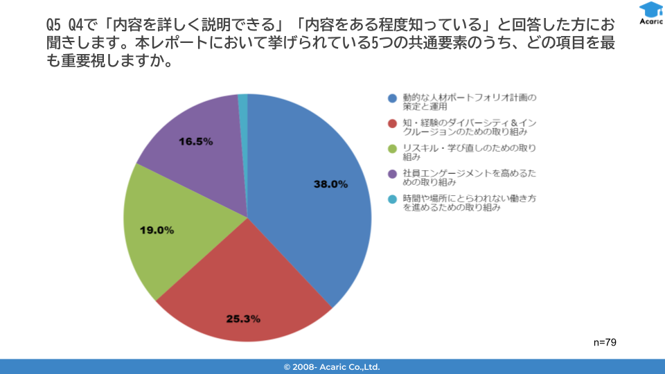 - 「動的な人材ポートフォリオ計画の策定と運用」が最も重要視されている
