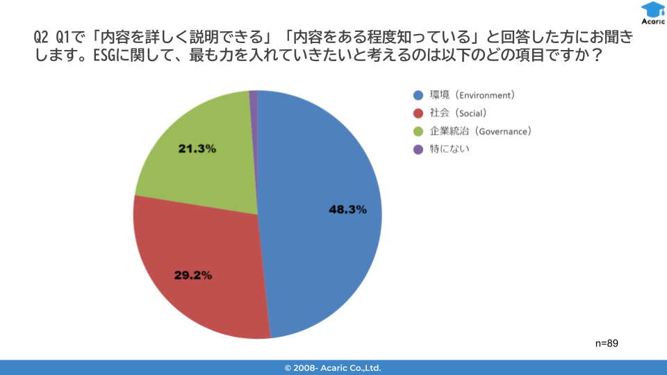 - ESGに関して、最も力を入れていきたいのは「環境」