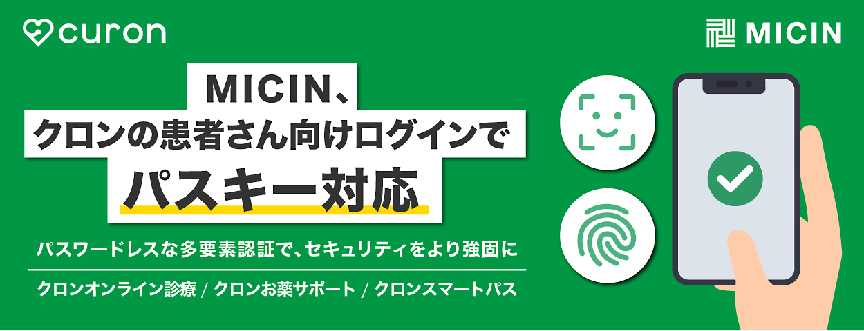 MICIN、オンライン診療クロン、クロンお薬サポート、クロンスマートパスの患者さん向けログインでパスキー対応